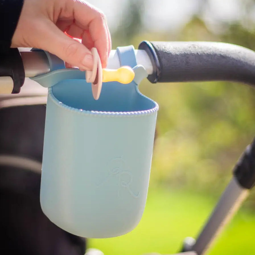 Der Ryan & Rose-Halter ist eine geniale Lösung, die nicht nur als praktischer Getränkehalter für den Kinderwagen fungiert. Dieser vielseitige Halter kann für alles verwendet werden, vom Mobiltelefon und Schnuller bis hin zur Aufbewahrung kleiner Gegenstände im Waschbecken, Bett oder an jedem anderen Ort, an dem Sie leicht darauf zugreifen müssen. Es lässt sich leicht reinigen und verfügt über kleine Löcher im Boden, sodass Wasser leicht ablaufen kann und sich keine Ansammlungen bilden.