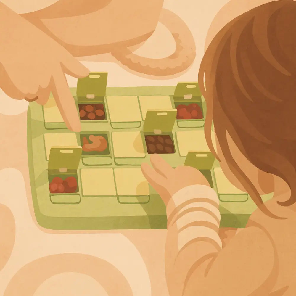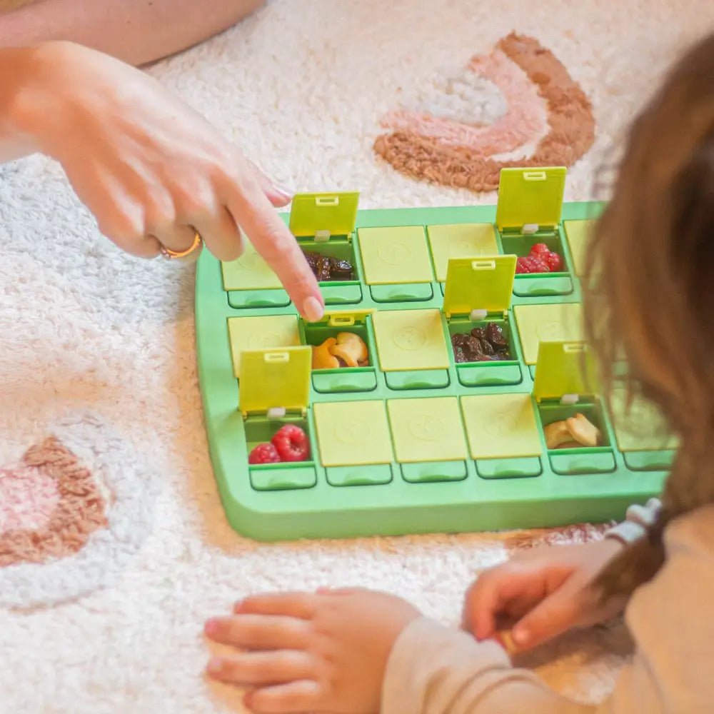 Diese clevere Snackbox , die auch als Flip-Spiel fungiert, ist perfekt, um die Kleinen zu unterhalten, während sie ihre Snacks genießen. Füllen Sie zwei identische Snacks in zwei Fächer Ihrer Wahl, schließen Sie die Box und das Spiel kann beginnen. Dies ist eine unterhaltsame Möglichkeit, die Geschmacksnerven von Kindern herauszufordern und gleichzeitig für Ordnung bei den Snacks zu sorgen. Perfekt für Reisen, Ausflüge oder als lustige Aktivität zu Hause.