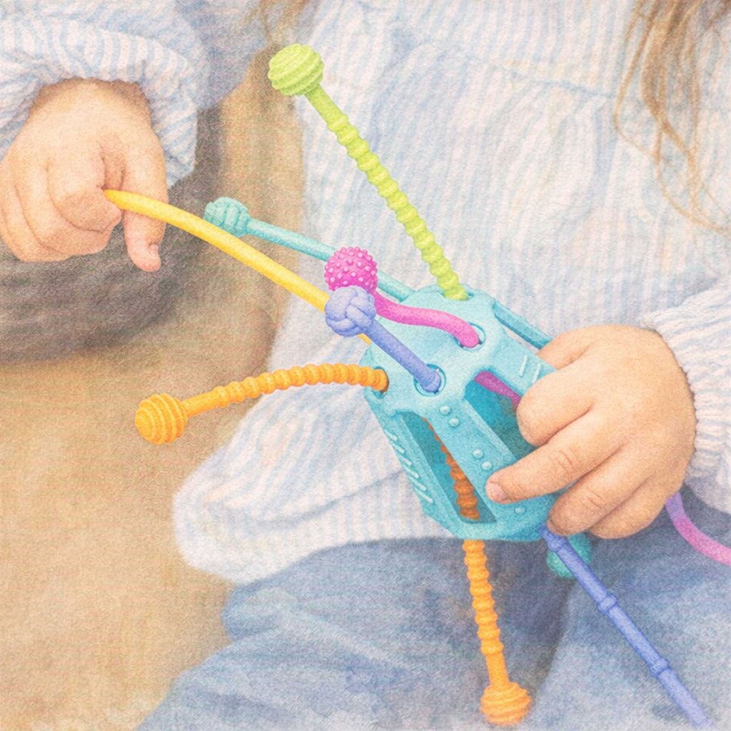 Inspired by children's natural desire to pull on shoelaces, Möbi Zippee is designed as a fun and safe alternative. Created in collaboration with doctors and therapists, Möbi Zippee is developed to be both clean and therapeutic, while also engaging children in play.