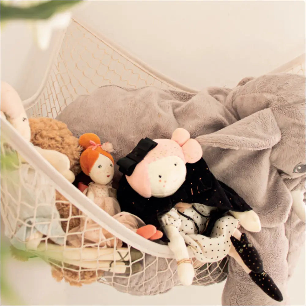 Hængekøjen er en smart, dekorativ og pladsbesparende løsning til opbevaring af bamser og legetøj på børneværelset.