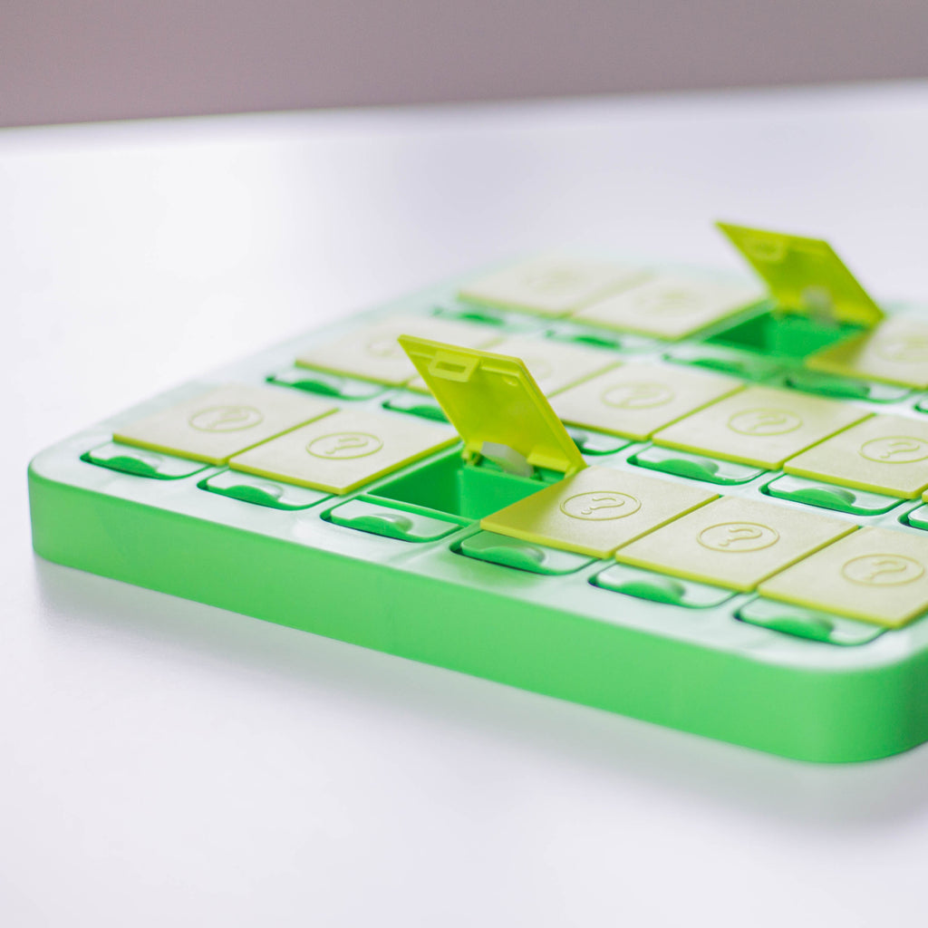 Denne smart snackboks, der også fungerer som vendespil, er perfekt til at underholde de små, mens de nyder deres snacks. Fyld to ens snacks i to valgfri rum, luk boksen, og lad legen begynde. Det er en sjov måde at udfordre børns smagssanser og samtidig holde snacksene organiseret. Perfekt til rejser, udflugter eller som en sjov aktivitet derhjemme.