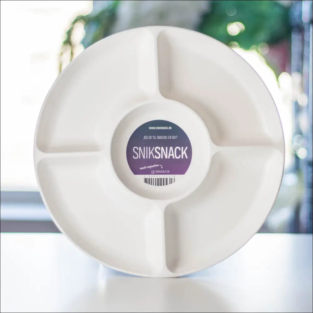 SnikSnack snackfadet gør det nemt at servere snacks, fredagsslik eller chips med dip. Fadet har fem opdelte rum og er perfekt til at holde maden adskilt. Med en diameter på 25 cm og lavet af 100% genanvendeligt polypropylen uden skadelig kemi, er det både funktionelt og miljøvenligt.
